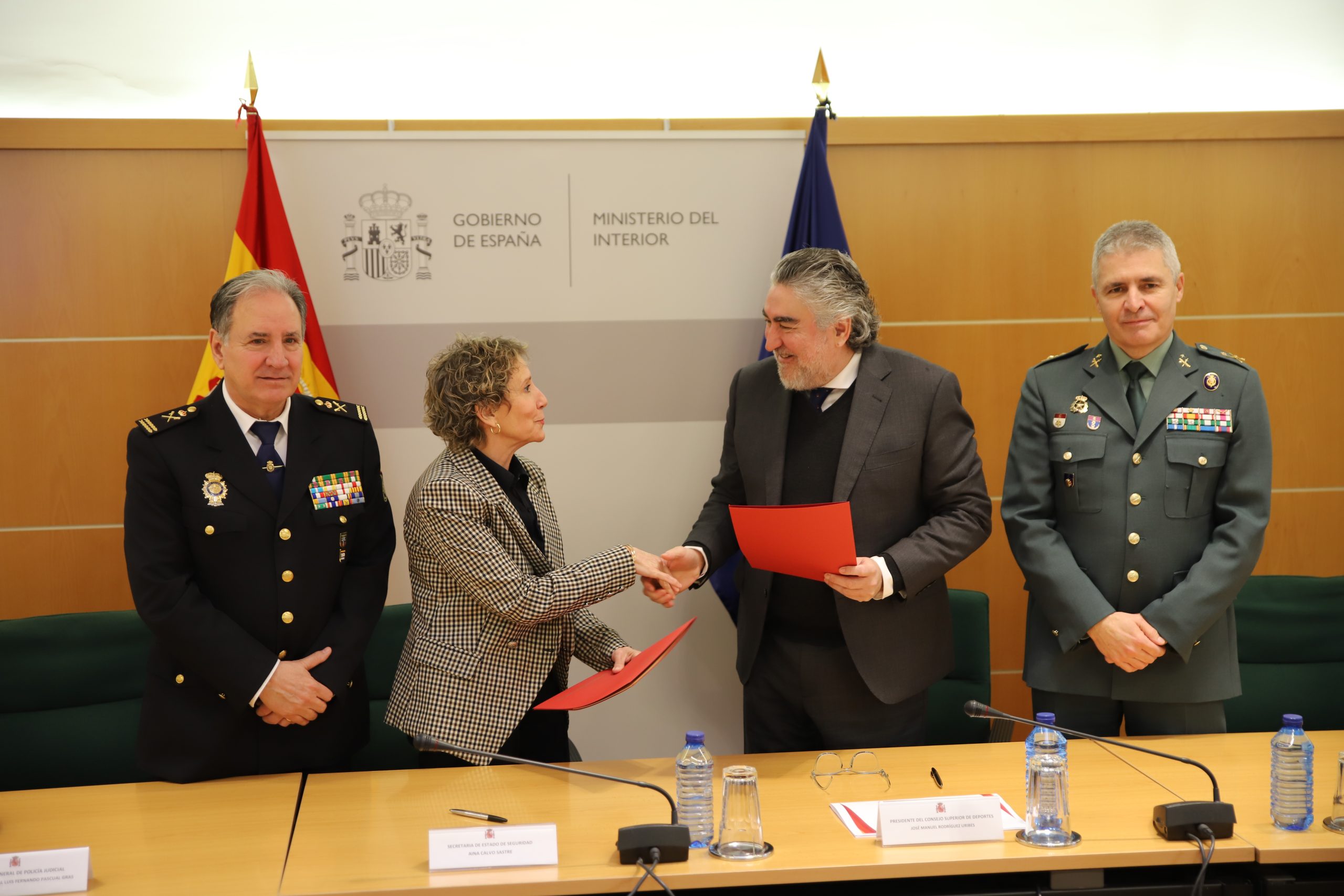 El convenio ha sido firmado por la secretaria de Estado de Seguridad, Ana María Calvo Sastre, y por el secretario de Estado para el Deporte y presidente de la CELAD, José Manuel Rodríguez Uribes.